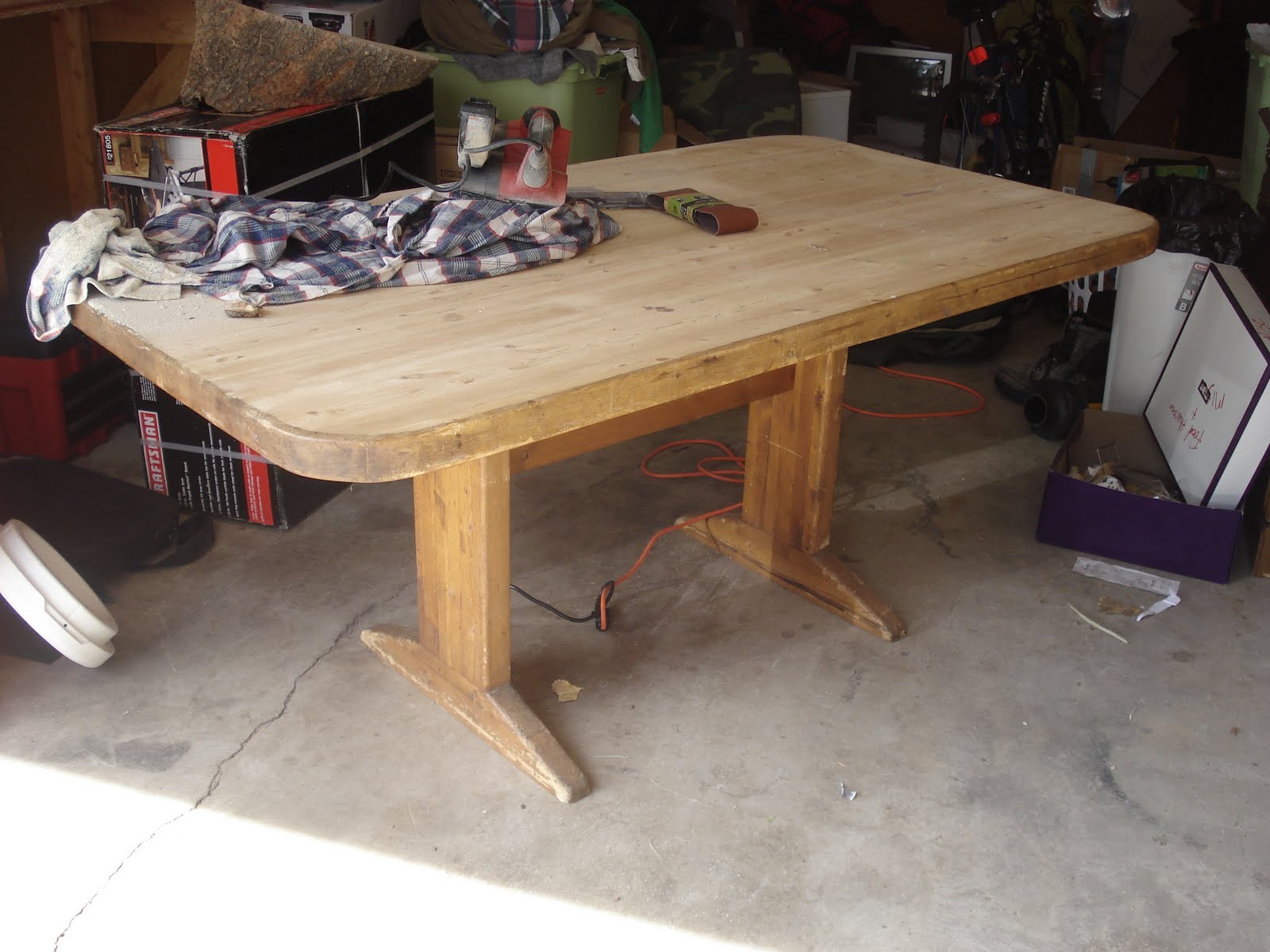 When we walked away from that garage sale (well drove... we weren't about to carry five chairs and a table home walking) we had visions of a beautifully refinished table. We were going to do it all ourselves. This was going to be our first furniture project together. And we were going to do it now.